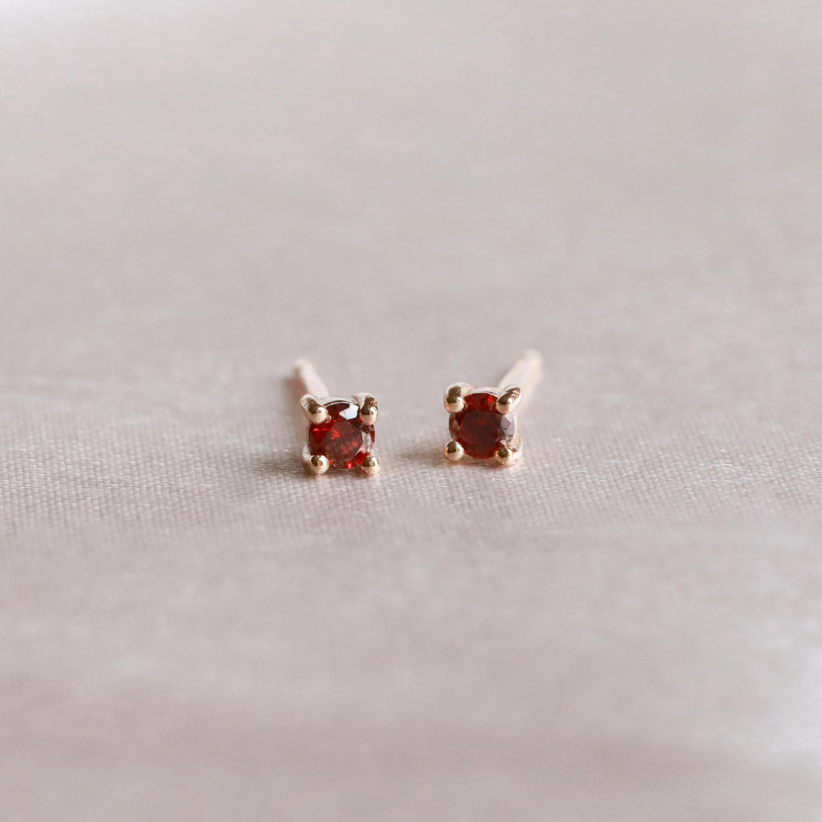 January Birthstone Stud Earrings in Gold with Garnet CZ