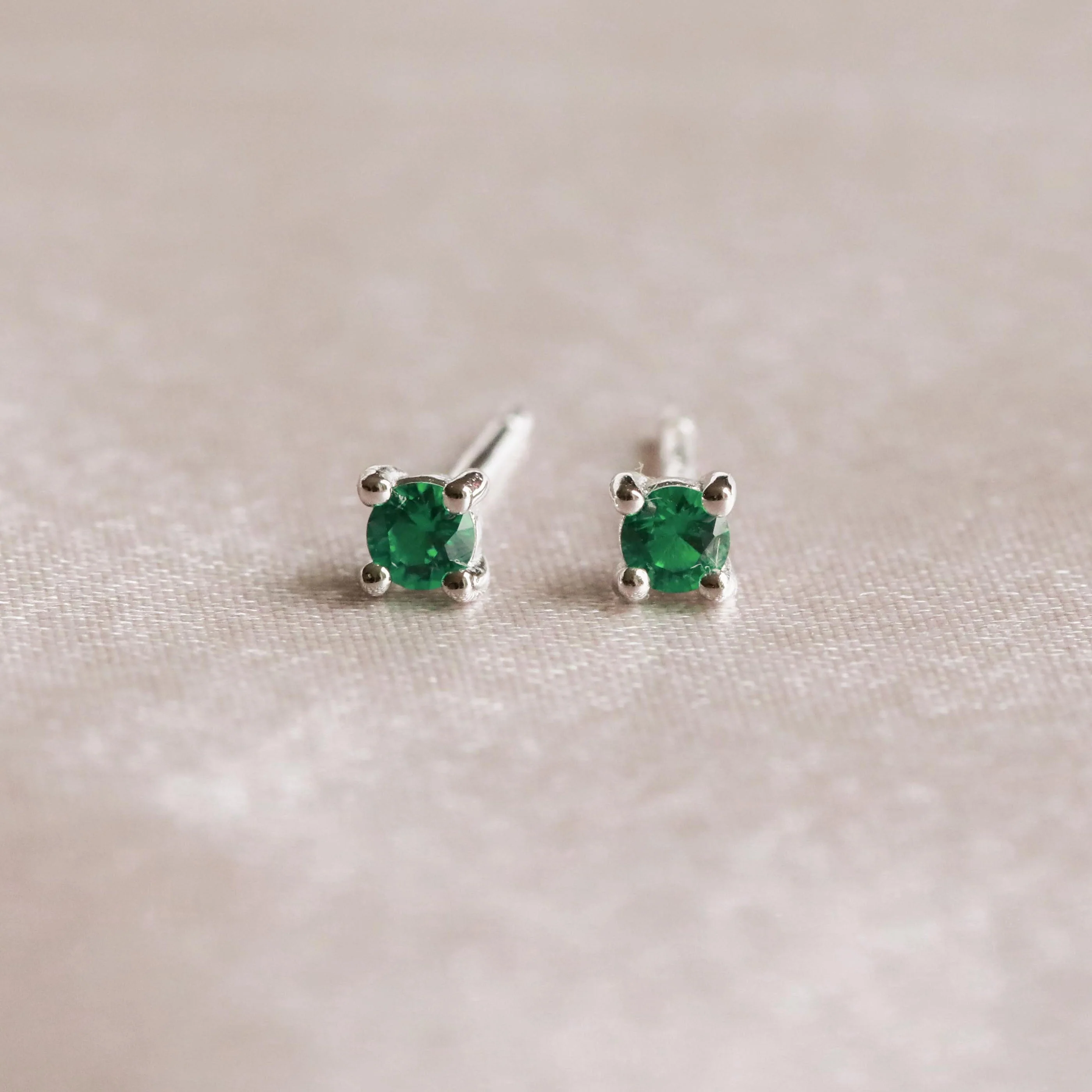 May Birthstone Stud Earrings in Silver with Emerald CZ